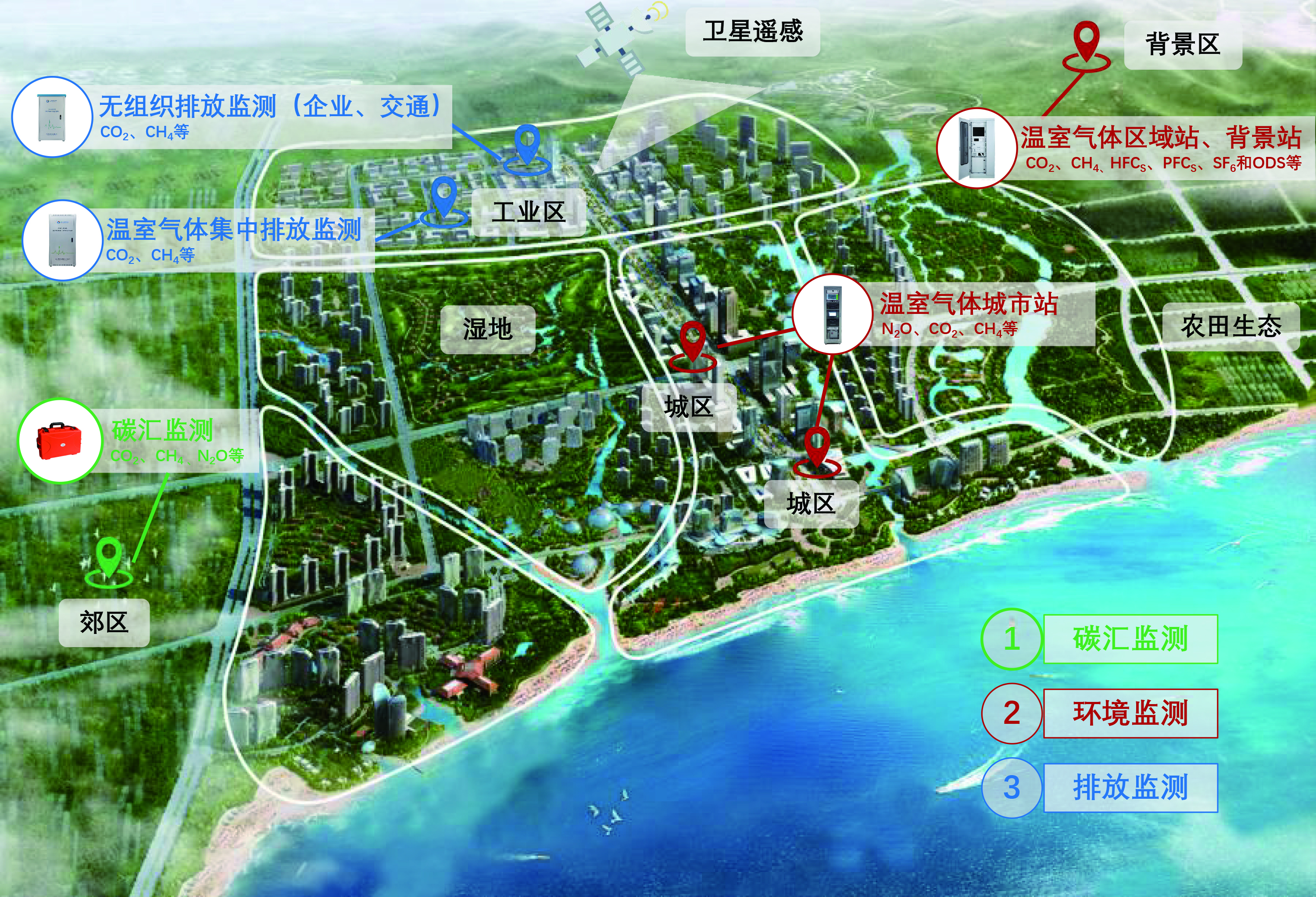 通過多種監測技術獲取溫室氣體濃度數據,結合碳同化反演模型掌握區域內碳源碳匯的分布情況