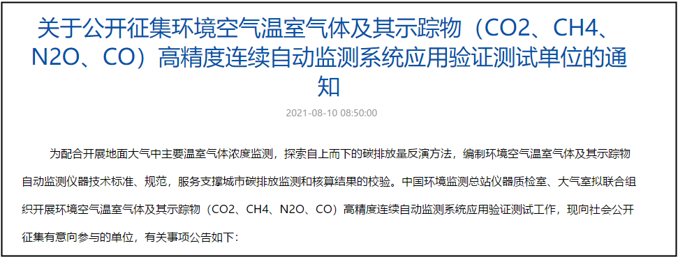 宣布試點溫室氣體的監(jiān)測方案,
