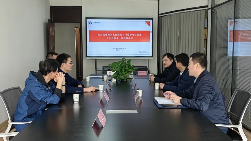 在總經理張俊龍博士的陪同下,國家電投湖北公司綜合智慧能源分公司總經理萬海先生一行人調研參觀了敢為科技的生產基地、文化展示中心、深入溝通了解了敢為科技智能制造生產線、企業發展歷程、產業布局等。
