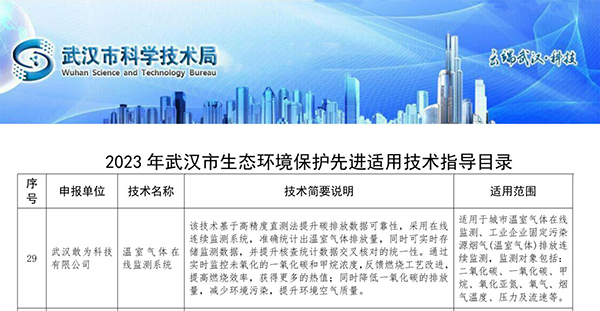祝賀 | 敢為科技入選《2023年武漢市生態環境保護先進適用技術指導目錄》
