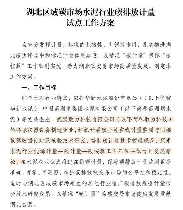 近日,湖北省市場監(jiān)督管理局辦公室印發(fā)《湖北區(qū)域碳市場水泥行業(yè)碳排放計量試點(diǎn)工作方案》的通知,敢為科技聯(lián)合湖北碳排放權(quán)交易中心、華新水泥、葛洲壩水泥以及省計量院,共同組織開展碳排放在線計量監(jiān)測與間接核算數(shù)據(jù)比對及核驗技術(shù)研究,編制碳計量技術(shù)管理規(guī)范,探索水泥行業(yè)能源計量—碳計量—碳核算工作三位一體協(xié)同發(fā)展路徑。該項工作于2023年8-9月正式啟動。