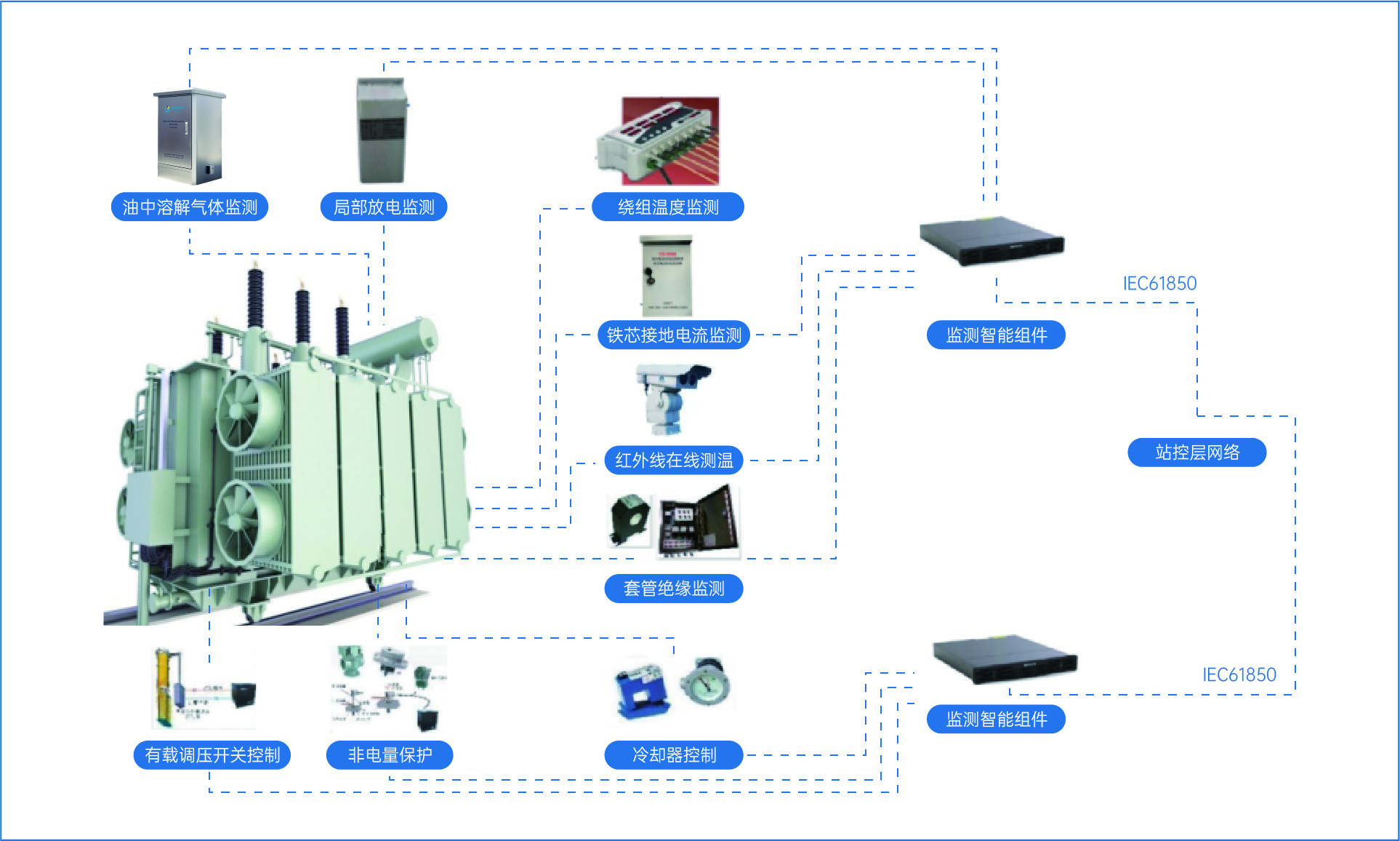 通過實時測量套管泄漏電流、介質(zhì)損耗(tanδ)及電容量變化,在線診斷絕緣老化、受潮等缺 陷,預(yù)警潛在擊穿故障,保障變壓器安全運行的智能化裝置。 |