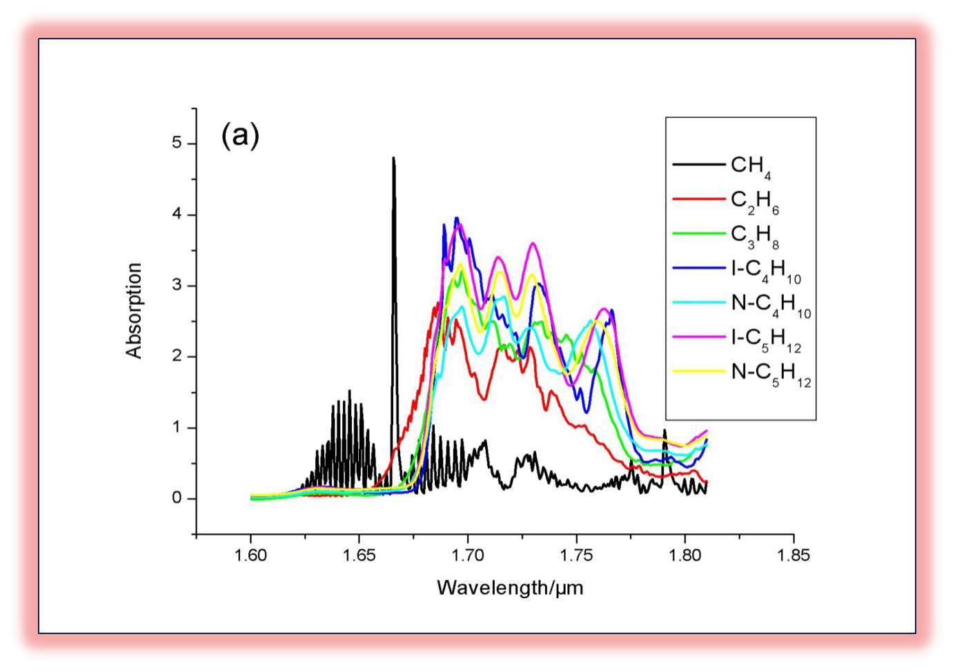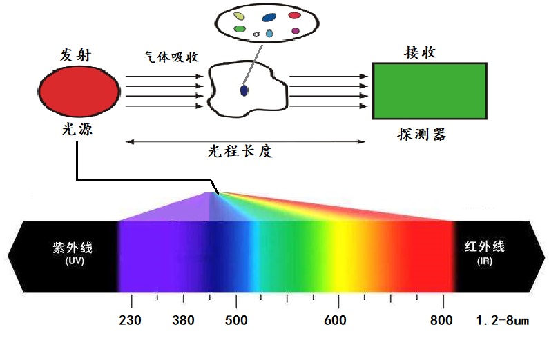 光譜儀可以掃描烷烴類的吸收峰1.2-1.8um附近的吸光度光譜吸收度,從來根據每種氣體的指紋信息來區(qū)分氣體類型,通過數學模型將樣品吸光度對應不同組分濃度的吸光度曲線,每種曲線在不同波段的高度綜合運算反映出實際對應的氣體物質的真實濃度。