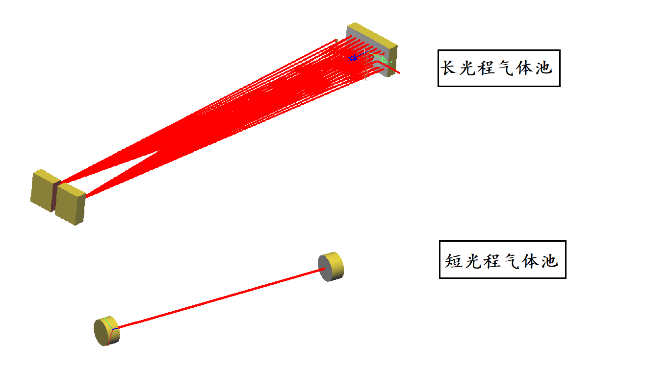 長氣室:長光程氣室負責低濃度的檢測,可以獲得比較低的檢測下限,但是會飽和吸收。