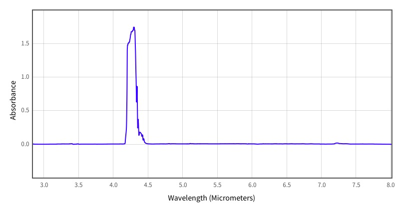 傳感器通過檢測一氧化碳的吸收峰4.65um附近的吸光度光譜來分析組分濃度。